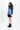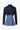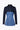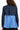 This fashion-forward shirt features a bold, layered design combining solid blue with contrasting vertical stripes. The straight-cut silhouette and dual-fabric effect add dimension and intrigue.