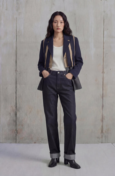Discover versatile elegance with our 3-in-1 blazer. Wear it as a full blazer for meetings, transform into a chic gilet for focused power, or style as a crop jacket for a trendy everyday look. Effortlessly mix and match to create unique ensembles that empower your daily elegance.